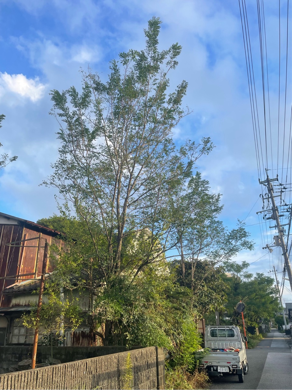 施工予定|高松市にて隣地へ越境した庭木の伐採 香川県高松市にて、隣地へ大きく越境してしまった庭木の伐採作業をご依頼い…