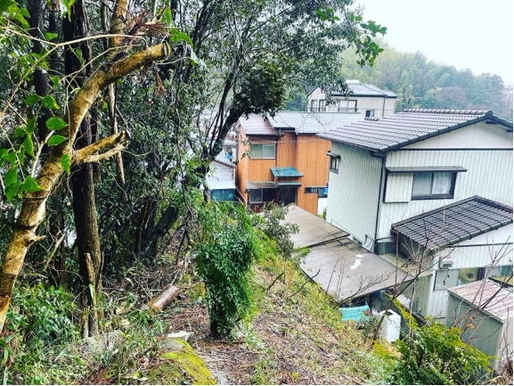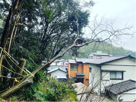 観音寺市 伐採 裏山 お客様で伐採を試みて家の方に倒れてしまった状況での伐採
