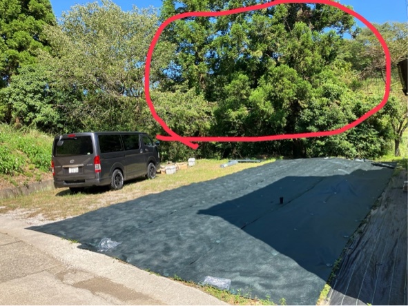 作業実績|高松市にて防草シートにより機械が入れない現場での高木・特殊伐採 高松市にて、防草シートが敷かれているため重…