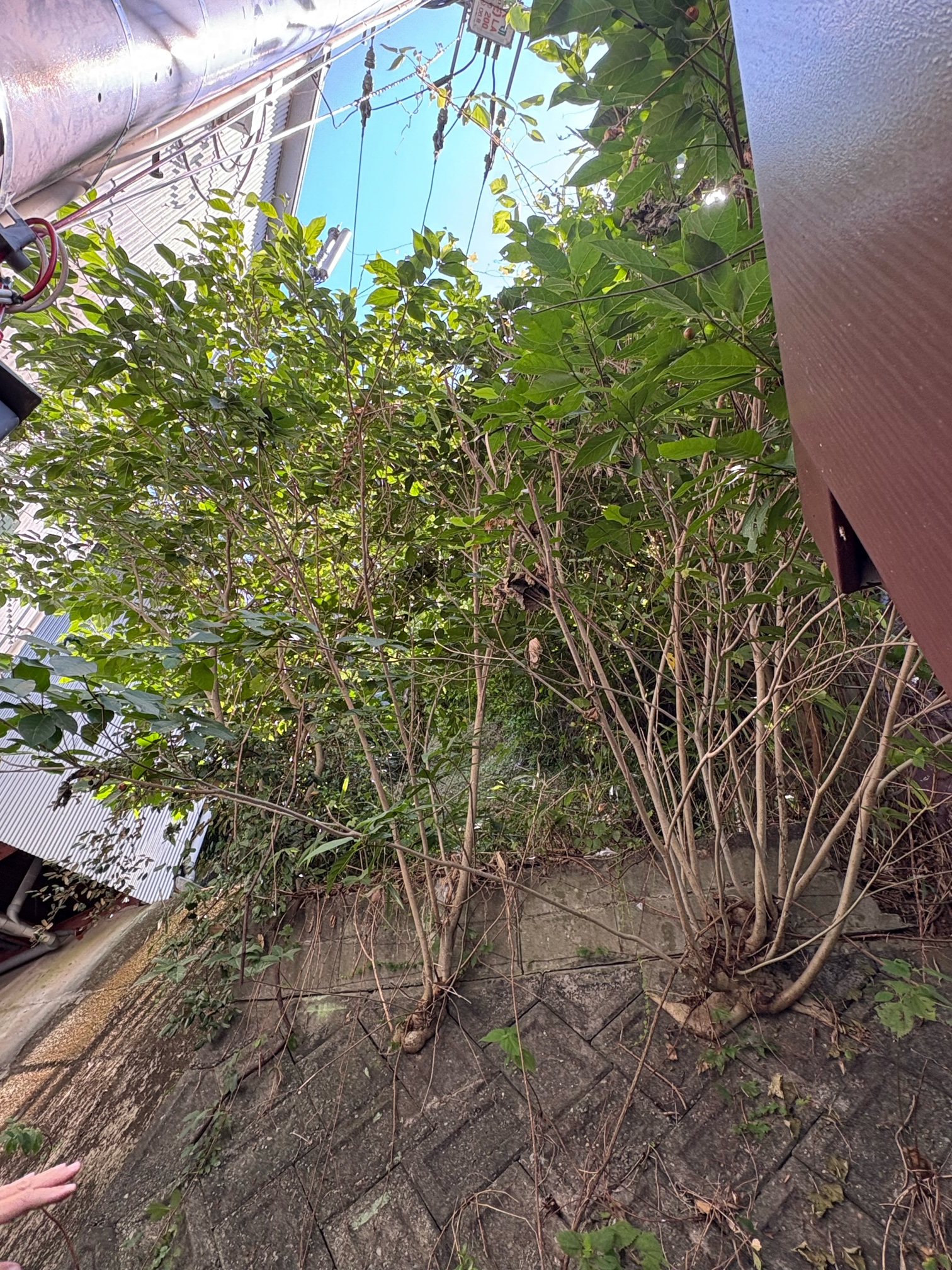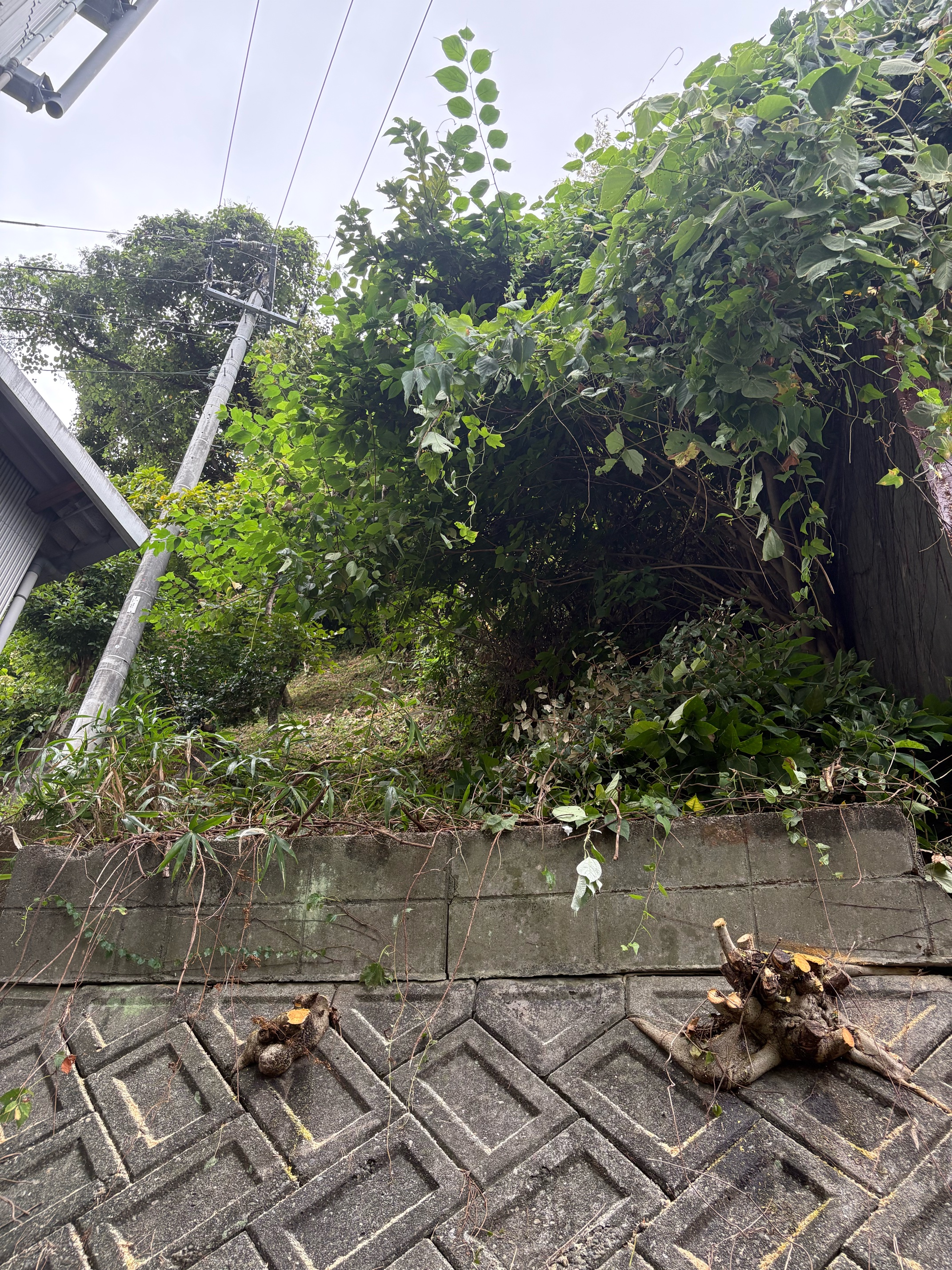 作業実績|高知市でブロックから生えてきた雑木の伐採 高知市にて、ブロックから生えてきている雑木の伐採作業 を行い…